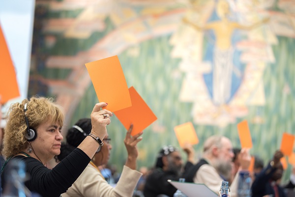 WCC Central Committe meeting 2018. Photo: Albin Hillert/WCC The World Council of Churches (WCC) Executive Committee will meet online on 1-3 June, while the WCC Central Committee meeting has been postponed until June 2021. In a letter to the WCC Executive Committee, WCC moderator Dr Agnes Abuom wrote: "The executive committee members participated in an electronic vote (WCC Rule Article XVIII.8) in April and May and have decided to further postpone the meeting of the WCC central committee until the first part of 2021 given the current situation in Switzerland and around the world related to COVID-19, with dates to be decided at a later time. At its meeting on Friday, 8 May, the leadership of the central committee agreed to hold the central committee meeting 23-29 June 2021 (arrivals of CC 22 June, departures 30 June). The executive committee would have its meeting on 21-22 June (arrivals 20 June)." WCC acting general secretary Rev. Prof. Dr Ioan Sauca has been sending monthly accountability reports to the WCC Central and Executive Committees to share information on the WCC’s focus and adjustment during the COVID-19 pandemic. "Even as staff remains offsite, and despite cancellation of some meetings and consultations, the important planned activities of WCC programmes and urgent responses to the pandemic situation have gone forward in April," he wrote. WCC invites all member churches to observe a day of prayer (WCC press release of 7 May 2020) WCC landing page: Coping with the Coronavirus Source⇒ WCC |